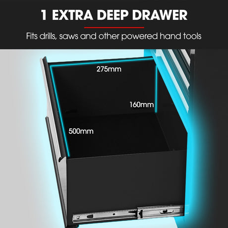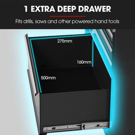BULLET 9 Drawer Tool Box Chest, Organiser Mechanic Garage Storage Toolbox Set - Blue