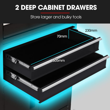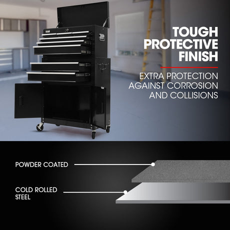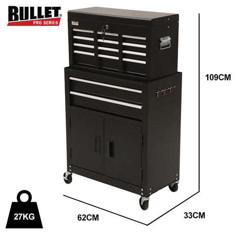 BULLET Pro 8 Drawer Tool Box Chest Cabinet Storage, with 2-Door Toolbox Garage Organiser Set, Black