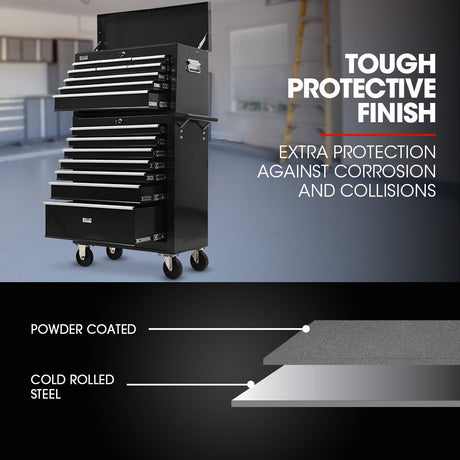 BULLET Pro 16 Drawer Tool Box Cabinet Chest Storage, Toolbox Garage Organiser Set, Black