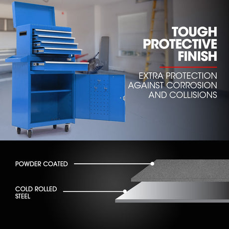 Bullet Pro 5 Drawer Tool Box Cabinet Chest Storage, with 1-Door Toolbox Garage Organiser Set, Blue