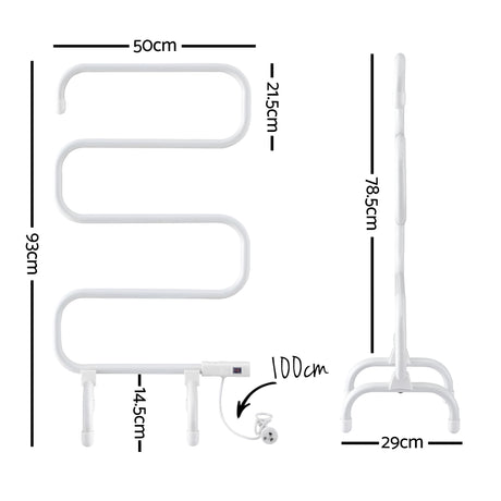 Devanti Heated Towel Rail Freestanding Wall Mounted S-Shape Electric Warmer Rack