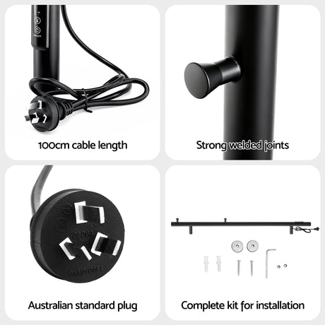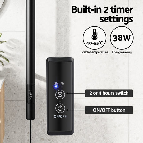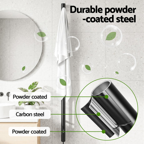 Devanti Heated Towel Rail with Timer Vertical Electric Heater Warmer Rack Black