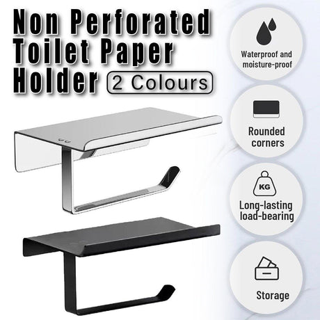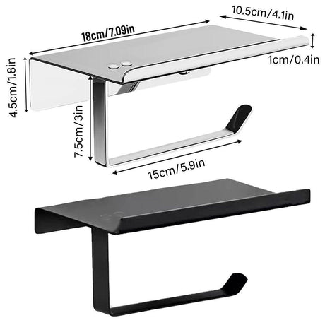 304 Stainless Steel Toilet Paper Holder Non-perforated Roll with Phone Rack - Black