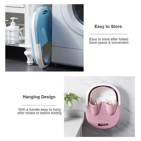 Foot Spa Water Pedicure Foldable Bucket Folding Massage Footbath Soaking Basin(Blue)
