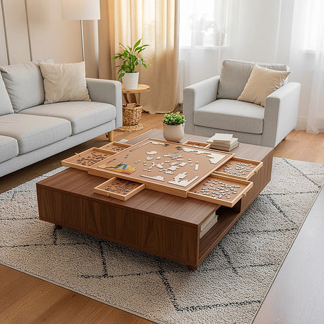 1500 Piece Rotating Wooden Jigsaw Puzzle Table 6 Drawers Board