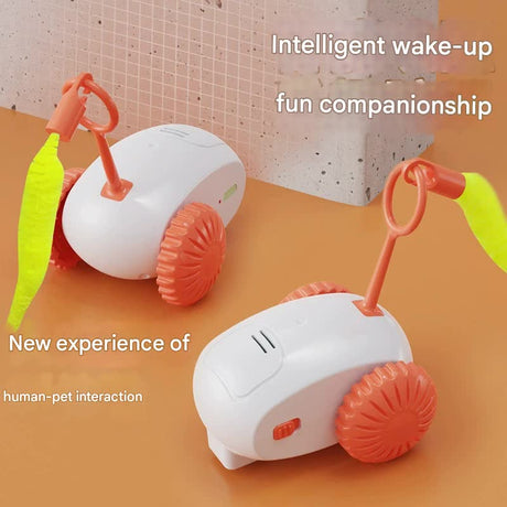 Interactive Smart Cat Toy Car - Automatic Obstacle Avoidance, Feather Tail, USB Rechargeable(orange)