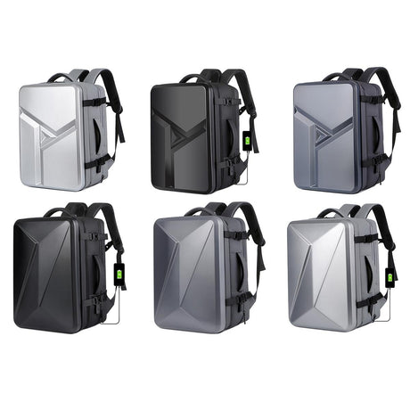 Waterproof Expandable Hard Shell Backpack with Usb Charging - Large Capacity Black - 162 Light Gray