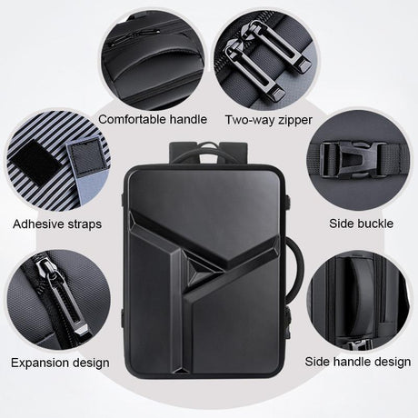 Waterproof Expandable Hard Shell Backpack with Usb Charging - Large Capacity Black - 161 Black
