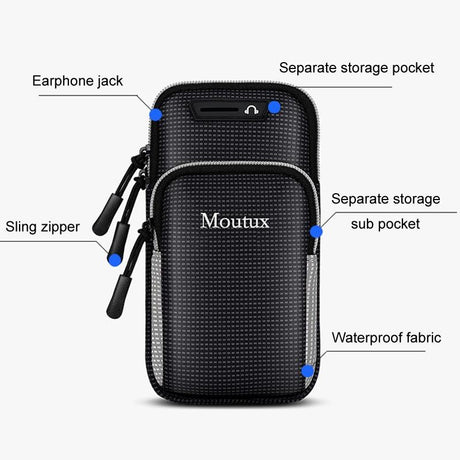 Waterproof Running Arm Bag For Mobile Phones Pouch For Outdoor Activities - Black