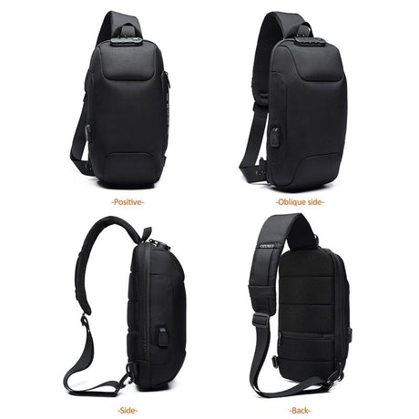 Anti Theft Men Waterproof Crossbody Bag With USB Port - Blue