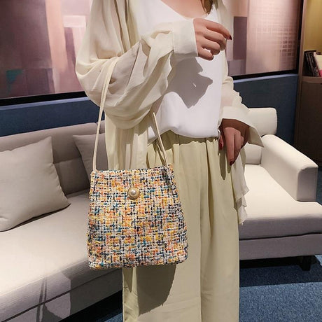 Black Woolen Knit Bucket Bag For Women - Yellow Onesize