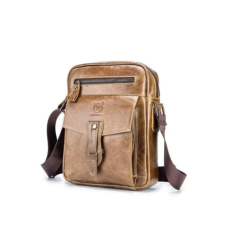 Cowhide Messenger Bag Large Capacity Briefcase Yellow Brown