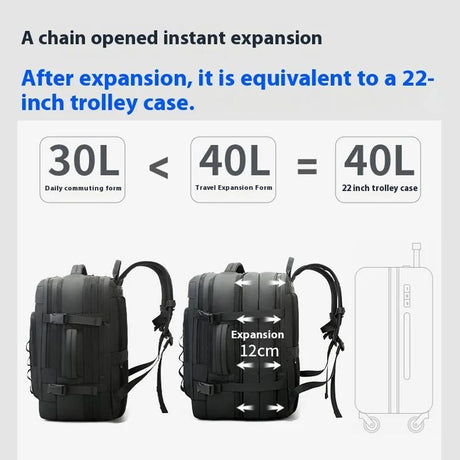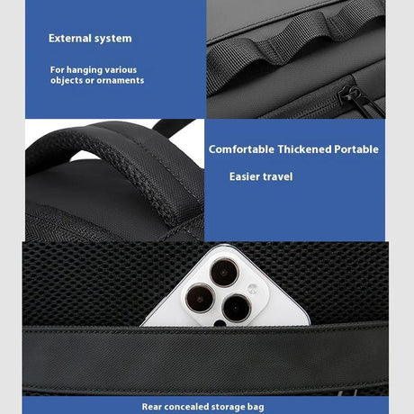 Large Capacity Convertible Travel Backpack - 16" Laptop Compartment, Shoe Pouch & USB Port(black)