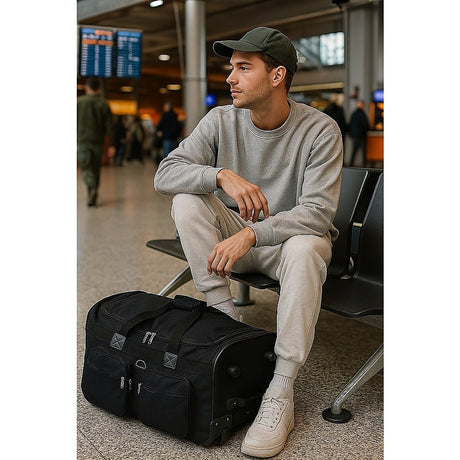 Large Black Wheeled Travel Duffle Bag – Rolling Luggage Trolley