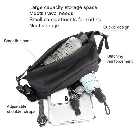 Men Casual Shoulder Bag Chest Pack For On The Go Convenience - Black