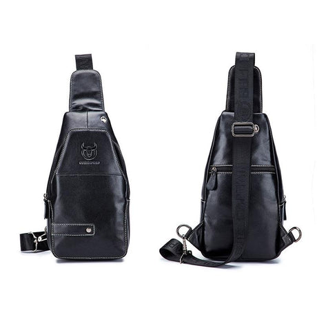 Men Leather Sports Chest Bag First Layer Cowhide - Black