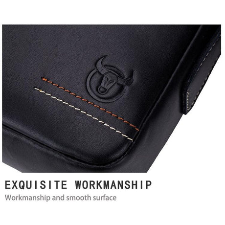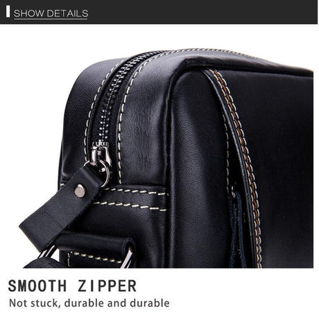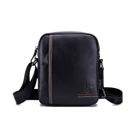 Men Leather Shoulder Bag Casual Mini Diagonal - Black