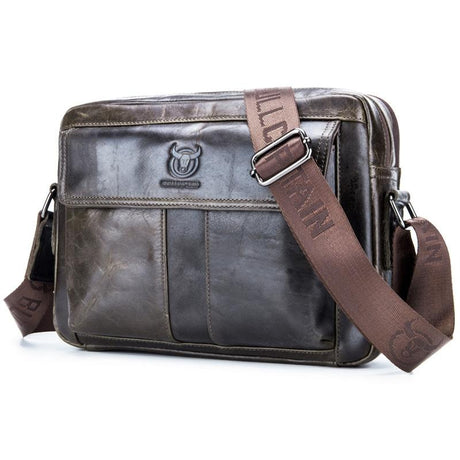 Men Litchi Texture Full Grain Cowhide Crossbody Bag - Coffee