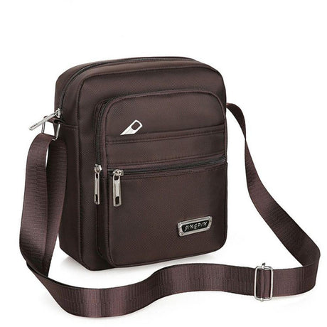 Mens Crossbody Shoulder Bag Travel Messenger Bag Casual Handbag for Boys and Men - Brown-6 zippers