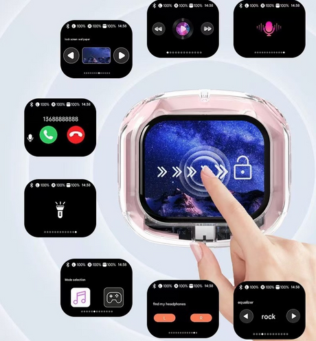 Intelligent Noise Reduction Bluetooth Earphones with Touch Control and Battery Display - Pink