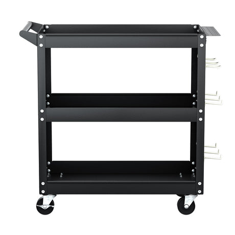 Giantz 3-Tier Tool Cart Storage Trolley Workshop Garage Pegboard Hooks Black
