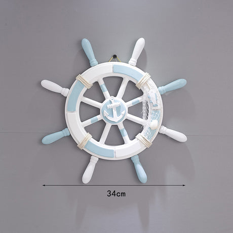 Nautical Wooden Rudder Wall Decor - 34cm Coastal Home Decor Accent (Light blue pull net rudder)
