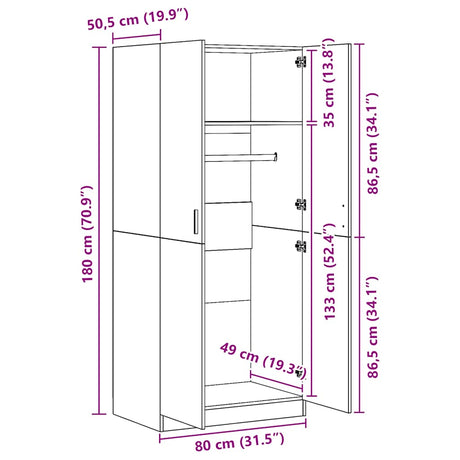 $58.97Unit price /UnavailableIn stock (50 units) Wardrobe White 80x50x200 cm Engineered Wood
