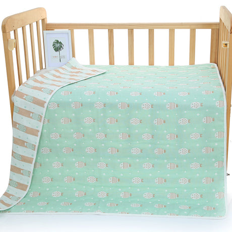 Green Fish, 6-Layer Muslin Baby Blanket - Soft Cotton Bedding for Infants and Toddlers, 110x110cm