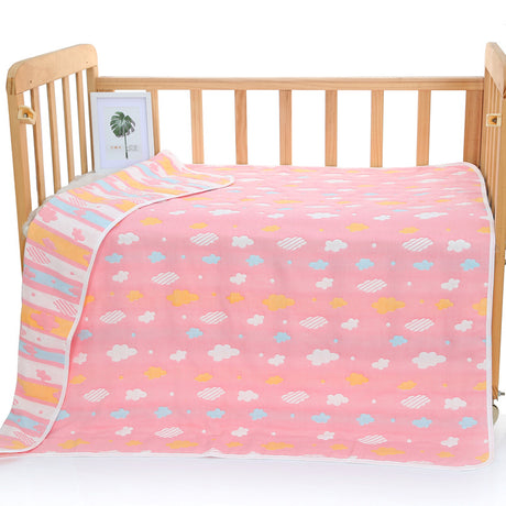 Pink Clouds, 6-Layer Muslin Baby Blanket - Soft Cotton Bedding for Infants and Toddlers, 110x110cm