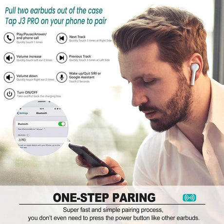 Waterproof Tws Bluetooth Earphones - Hd Stereo Sound - White