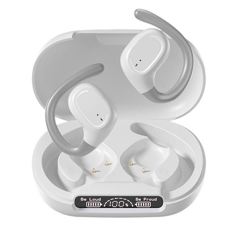 Waterproof Wireless Sports Bluetooth Earphones with Led Display - White