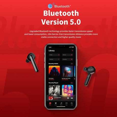 Waterproof Wireless Bluetooth Earphones - Stereo 5.0 - Black