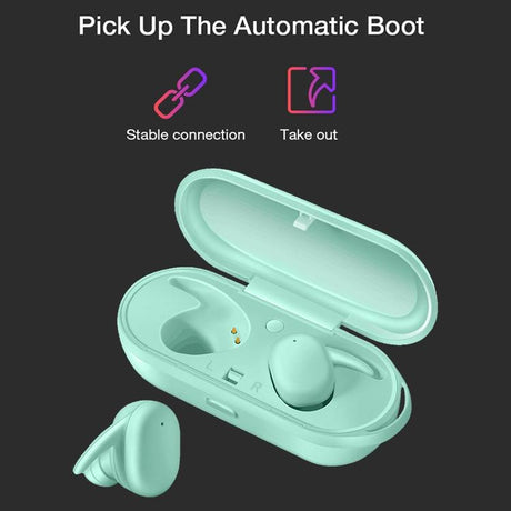 Waterproof Wireless Bluetooth Earphones with Magnetic Charging Box - 300mah - Green