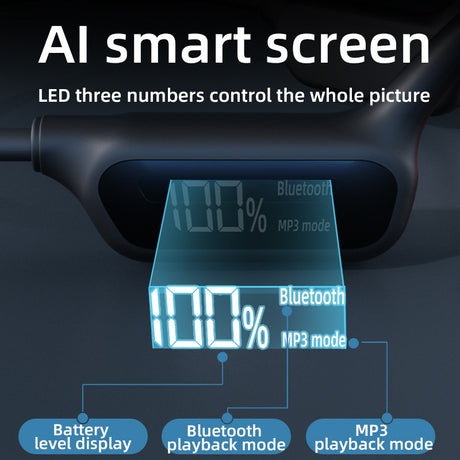 Waterproof Wireless Sports Bluetooth Earphones with Led Display - Black