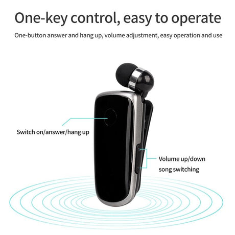 Wireless Bluetooth In-ear Earphone with Vibrating Alert and Hands-free Clip - Black