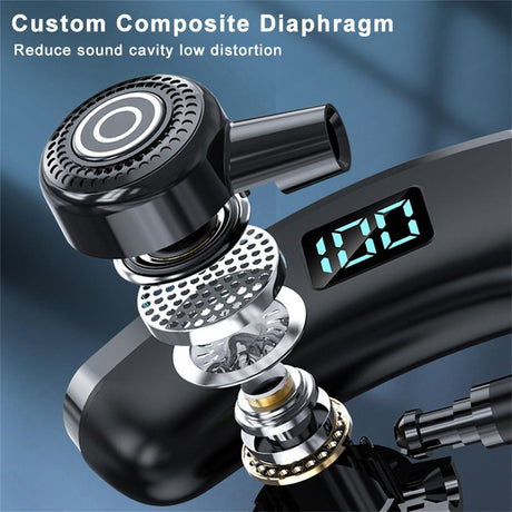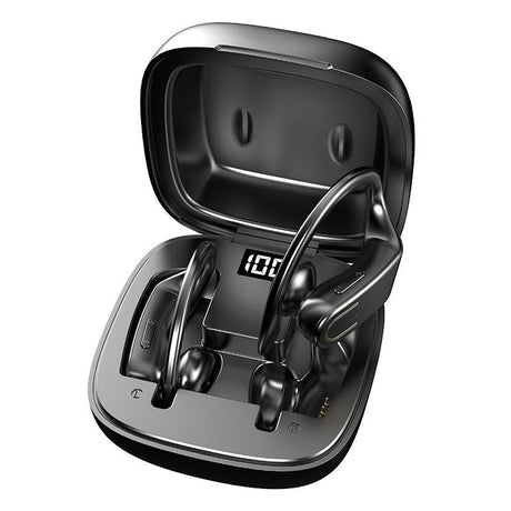 Wireless Bluetooth Earphones with Led Display and Hifi Sound for Sports - Black