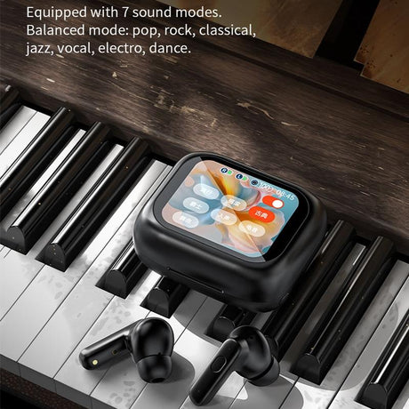 Wireless Bluetooth Earphones with Touch Screen & Noise Reduction - Black