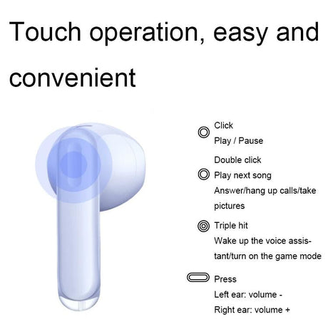 Wireless Bluetooth Earphones with Noise Reduction for Calls and Music - Semi-in-ear Design - Purple