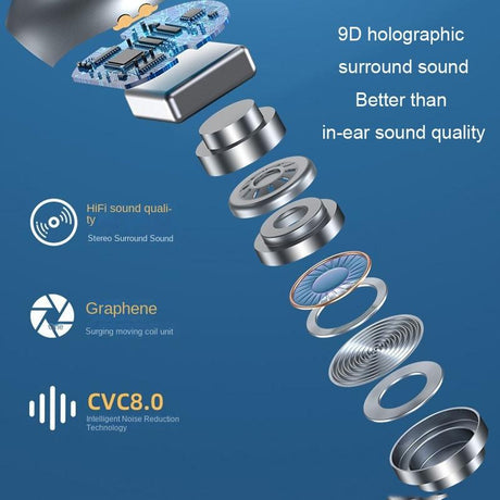 Wireless Bone Conduction Earphones with Noise Reduction - Black