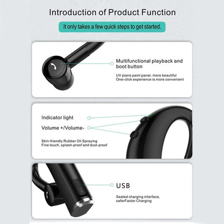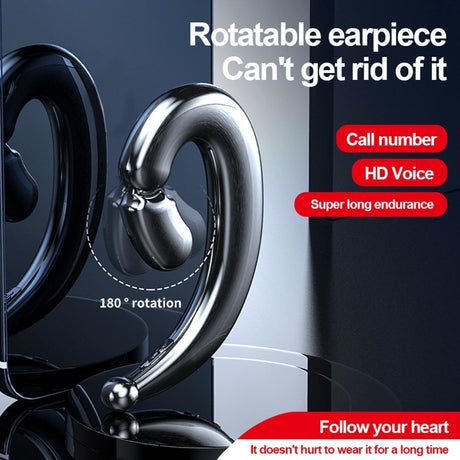 Wireless Bone Conduction Bluetooth Headset - Hanging Ear Design - Black