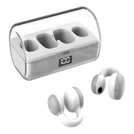 Wireless Clip-on Earphones with Charging Case - White + Gray