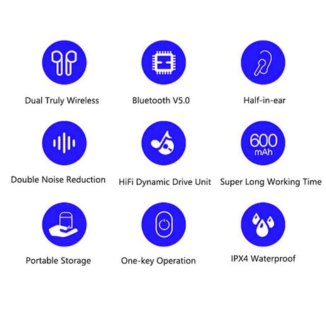 Wireless Touch Earphones with Magnetic Charging Box - Bluetooth 5.0 - Blue