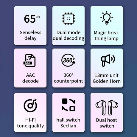 Low Latency Wireless Bluetooth Game Earphones with Colourful Lights - Non-Digital Display