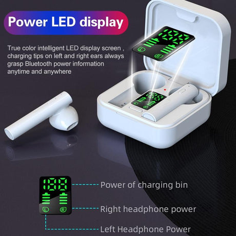 Mini Bluetooth Earphones with M5 Digital Display - White