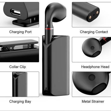 Mini Invisible Bluetooth Earphones with Charging Case - Black