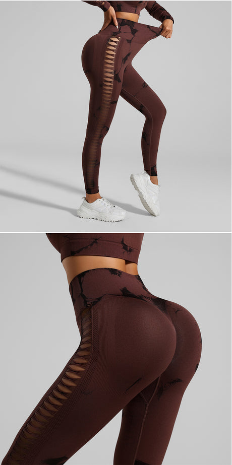Black Size L Tie-Dye Yoga Set Long Sleeve Butt Lift Leggings Seamless Workout Training Gym Clothes