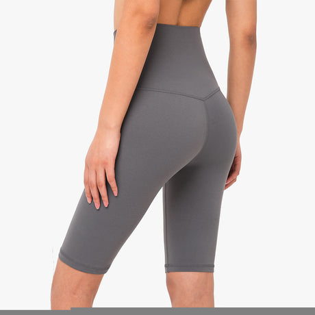 S Grey High-Elastic Hip Yoga Shorts - Seamless Mid-Intensity Pilates Workout Shorts