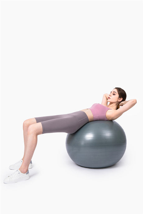 L Purple Color-Block High-Waist Yoga Shorts - Seamless Scrunch Butt Anti-Chafing Workout Shorts
