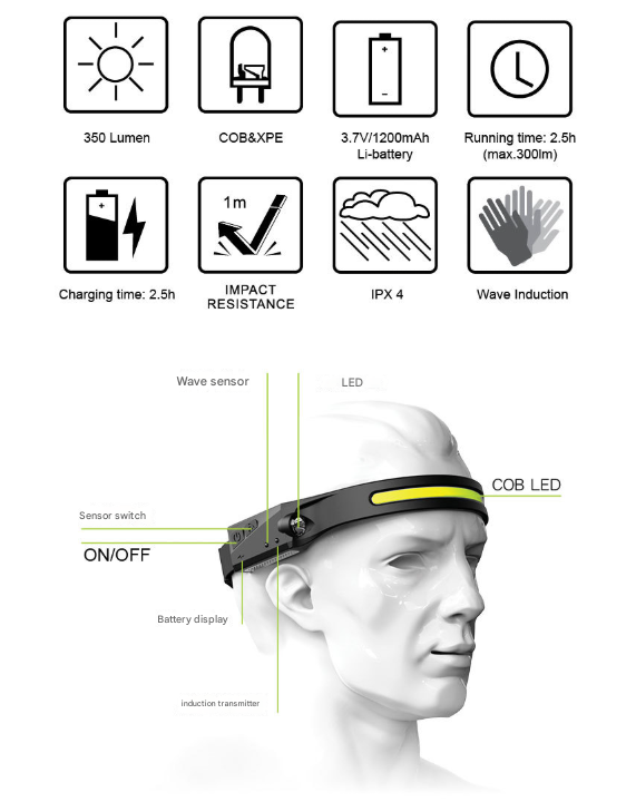 Illuminate your entire field of view with our state-of-the-art COB LED Headlamp. Designed for work, recreation, and emergencies, this headlamp provides a superior panoramic light that eliminates the need to turn your head. Combined with a powerful spotlight and a hands-free motion sensor, it's the only headlamp you'll ever need.