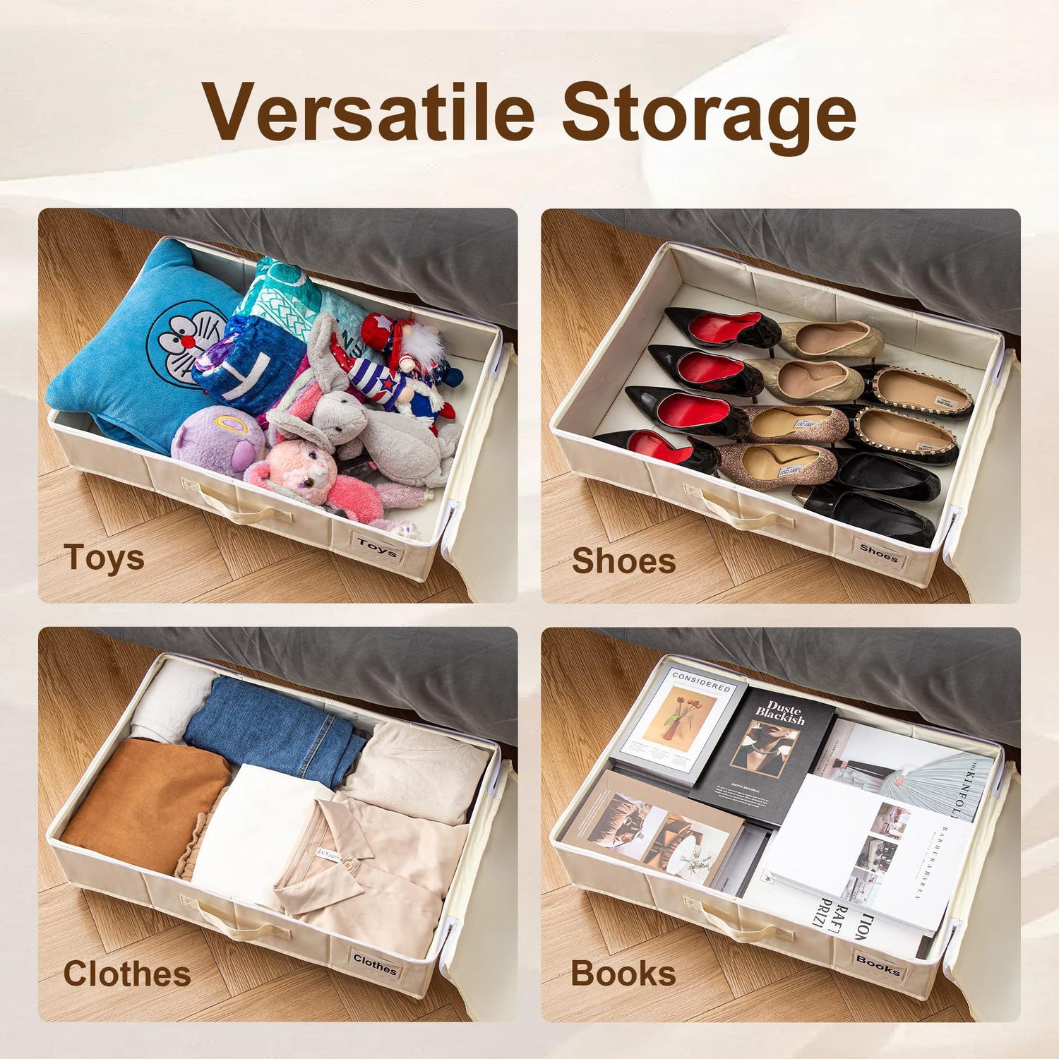 - Bedroom: Perfect under the bed for organizing seasonal clothes, shoes, or extra bedding while maximizing floor space.